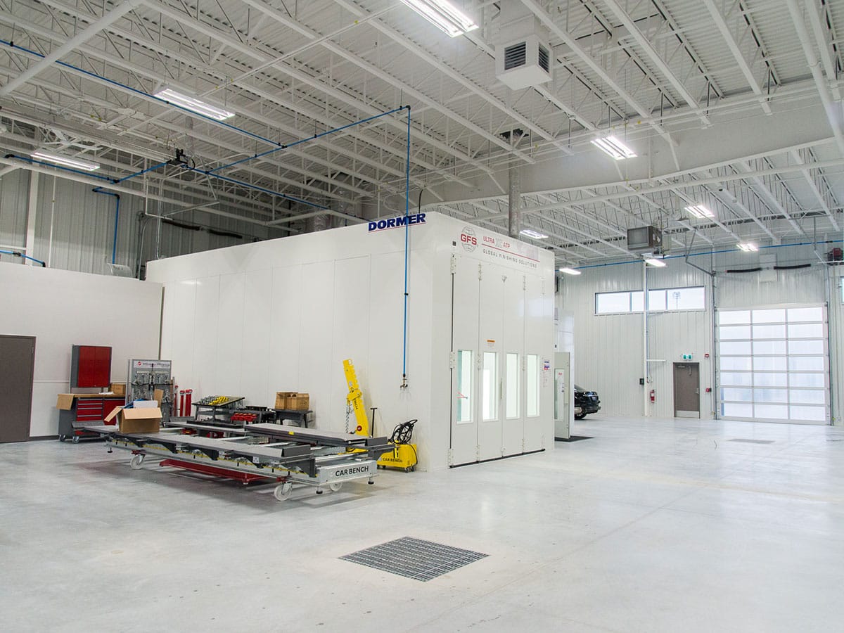 The only Mercedes-Benz certified collision center in Manitoba, Pinnacle Collision Centre’s goal is to provide customers with a complete, first-class experience from start to finish. From state-of-the-art equipment in the repair center to high-end furniture in the office, Pinnacle makes automotive repairs comfortable for their customers, as well as their employees. With an abundance of natural light and a drive-thru estimating and delivery area, the innovative shop is tailored to accommodate the cold winters of Canada.