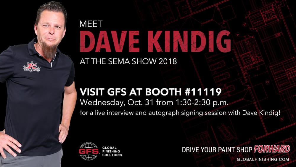OSSEO, Wis. — Global Finishing Solutions® (GFS) is eager to welcome Dave Kindig of Kindig-It Design to GFS Booth #11119 at this year’s SEMA Show, from Oct. 30 to Nov. 2 in Las Vegas. Part of an action-packed, educational event, GFS is dedicated to providing solutions and insights for collision repair shop owners, managers and employees to “Drive Your Paint Shop Forward.”