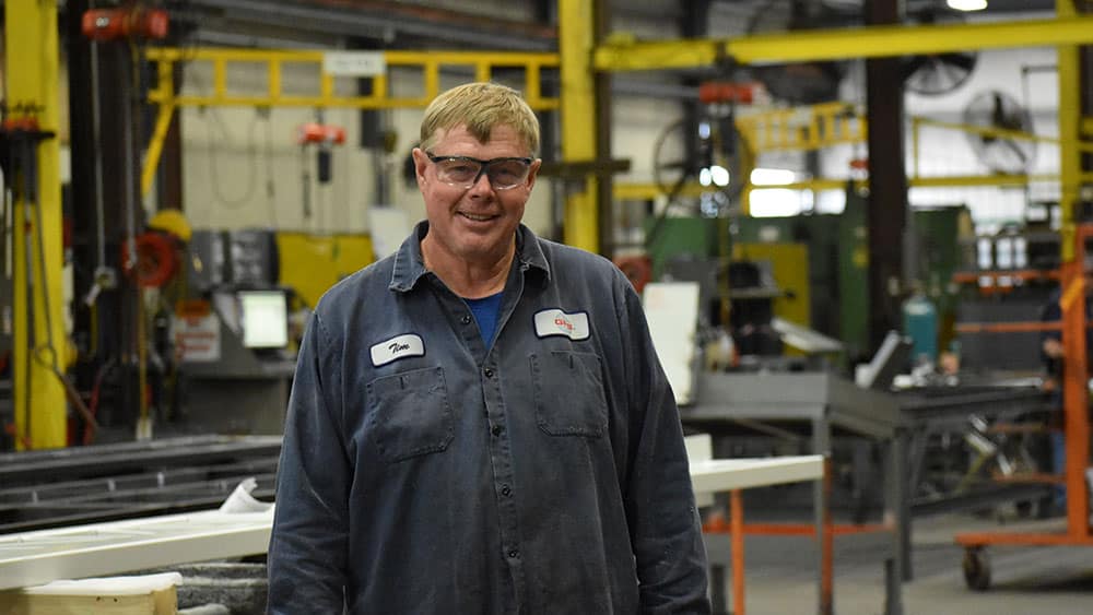 “I worked on a farm for many years. When the industry took a turn, and I had a baby on the way, I looked for a more stable position,” said Tim Urness, a GFS welder. “I saw an opening at GFS for a welder and applied. I didn’t have a lot of experience — only minor welding on the farm — but they were willing to give me a chance and train me. I started at Welder I, and over the last 21 years, I have moved my way up to Welder III.”