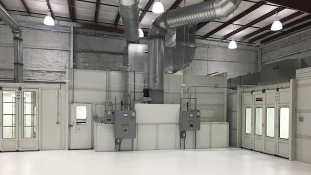 Joe Jones of Dietz Supply Company assisted the Riley brothers in outfitting their new finishing facility with a standalone Open Face Spray Booth for priming, as well as a Prep Room, Large Equipment Spray Booth and Drying Room/Clean Room. In this new facility, all of their finishing equipment is connected to create a nice pushcart workflow through the workshop.