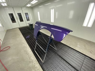 “I went with a 30-foot-long booth, so I have enough room to paint parts off the vehicle. It can get kind of crowded sometimes otherwise. I’ve always painted in nice downdraft paint booths, and I couldn’t see myself going backward. The booth has been performing really well. The lighting is awesome, and the airflow is really good.”