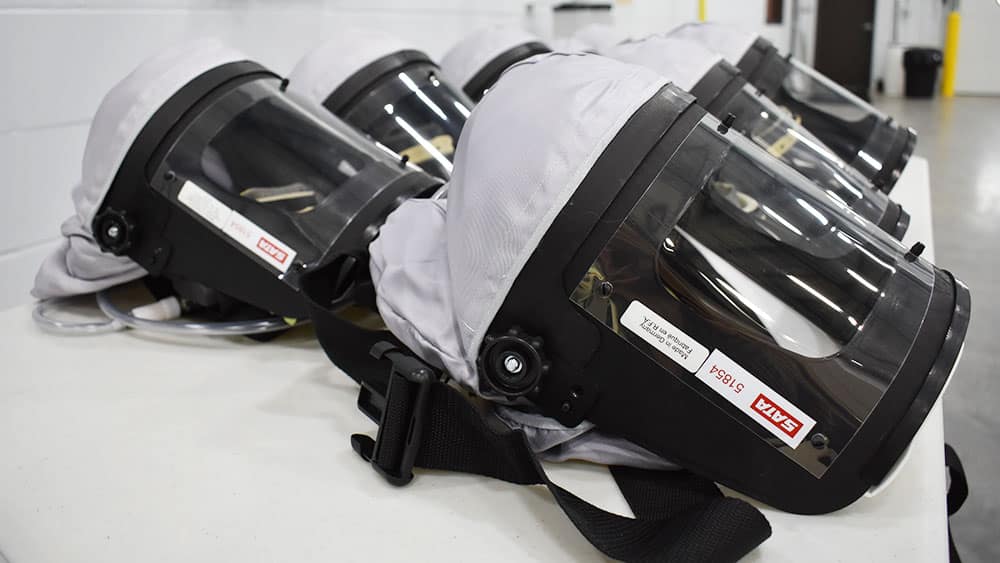 In addition to full paint suits and gloves, technicians should wear hoods. Many hair products, including shampoos and conditioners, can cause fisheyes in the paint. Also, hoods prevent painters from breathing in hazardous materials released from the painting process. All the PPE should only be worn in the paint booth and mix room. Never wear a paint suit anywhere else in the shop or it will also become contaminated.