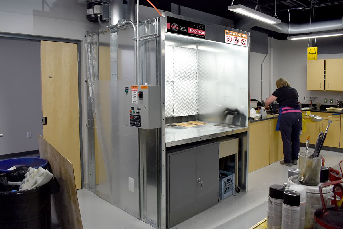 “There is a lot less turbulence in the Bench Booth compared to our previous setup. The Bench Booth has a nice airflow through it, so we use it to dry other coatings as well. It is also lit inside, whereas the old fume hood was not. Having lighting in there has really helped eliminate shadows when students are spraying.”