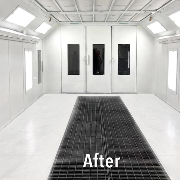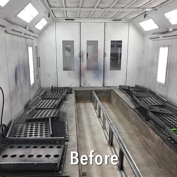 Brighten & Protect: Booth Shield Pro is easier to use than traditional paper wrap and creates significantly less mess. Once dry, the coatings stand up to heavy use, including foot and vehicle traffic. Booth Shield Pro can even brighten galvanized paint booths, giving them a clean white finish and ensuring prime visibility for working inside the booth.
