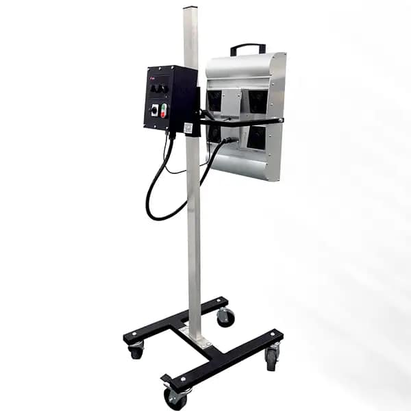 - Unit stands on a strong, durable cart that is easy to maneuver and takes up a minimal amount of valuable floor space