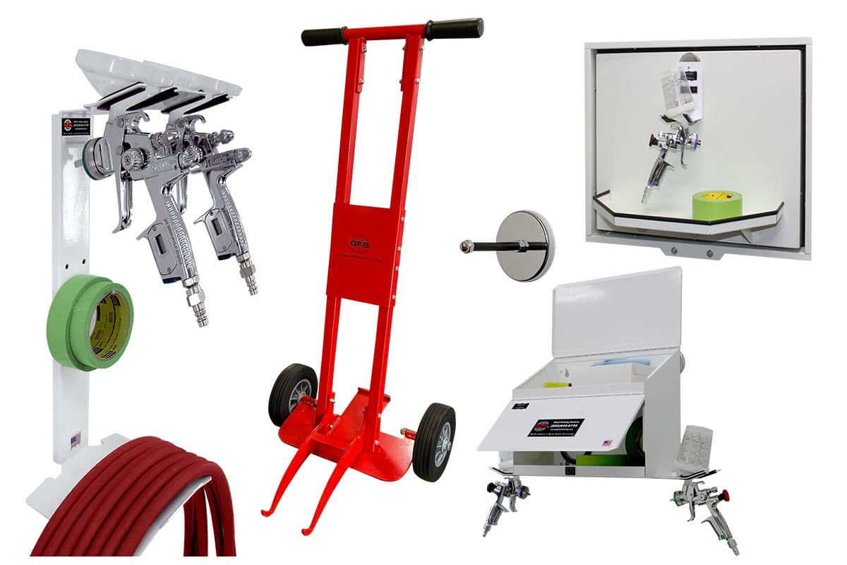What products give you convenient access to commonly-used painting supplies, such as spray guns, tape, air hoses, rags and more