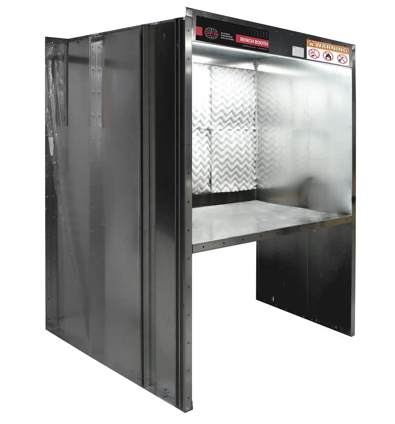 Our smallest paint booths, Bench Paint Booths from Global Finishing SolutionsĀ® (GFS) allow businesses and hobbyists to paint small products in a safe, code-compliant environment. Models are available with an integrated raised bench or designed to be placed on a countertop to make painting small parts easy and accessible. With fast shipping on Bench Booths, you can start painting sooner.