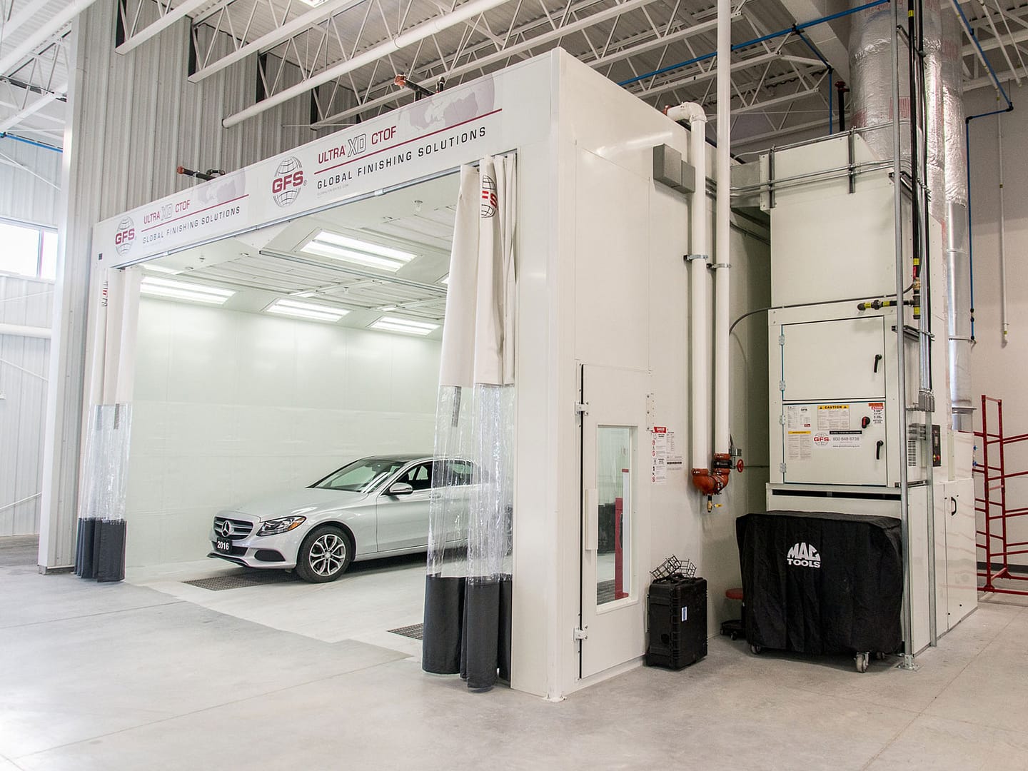 Highly versatile, GFS’ BT1200 heat unit can be placed on the side or rear of a paint booth, and is available in both recirculating and forced-dry models.